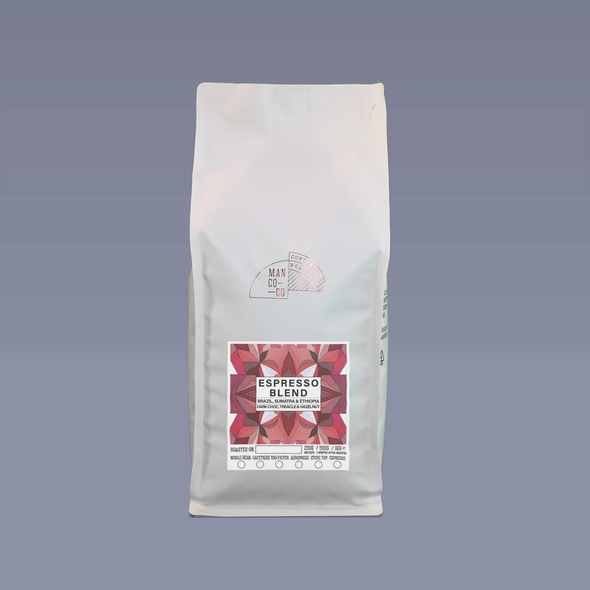 Here’s our very own signature ManCoCo Espresso Blend, an all-round espresso coffee which is great for espresso shots, espresso-based drinks such as lattes and cappuccinos and it works great in a cafetière too!