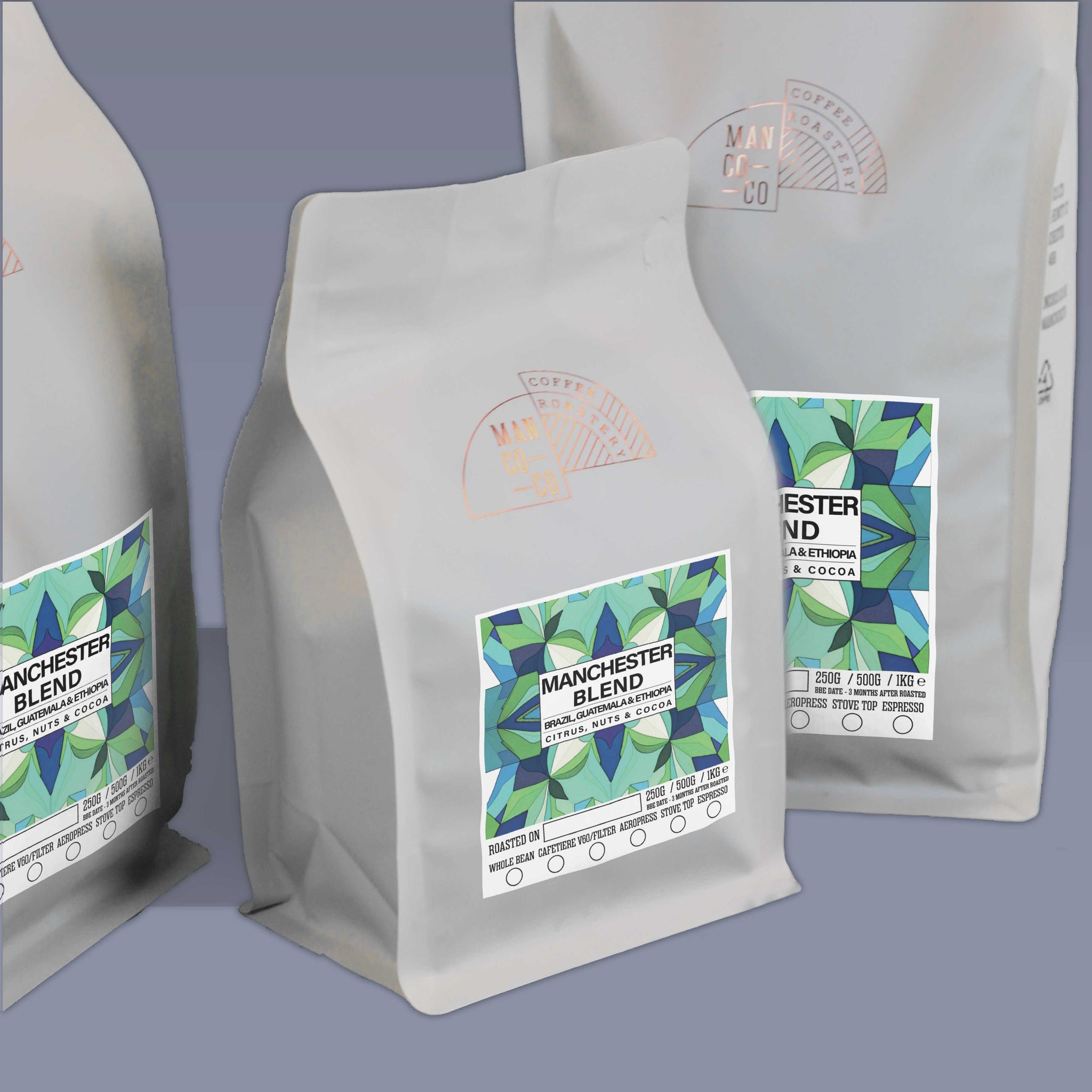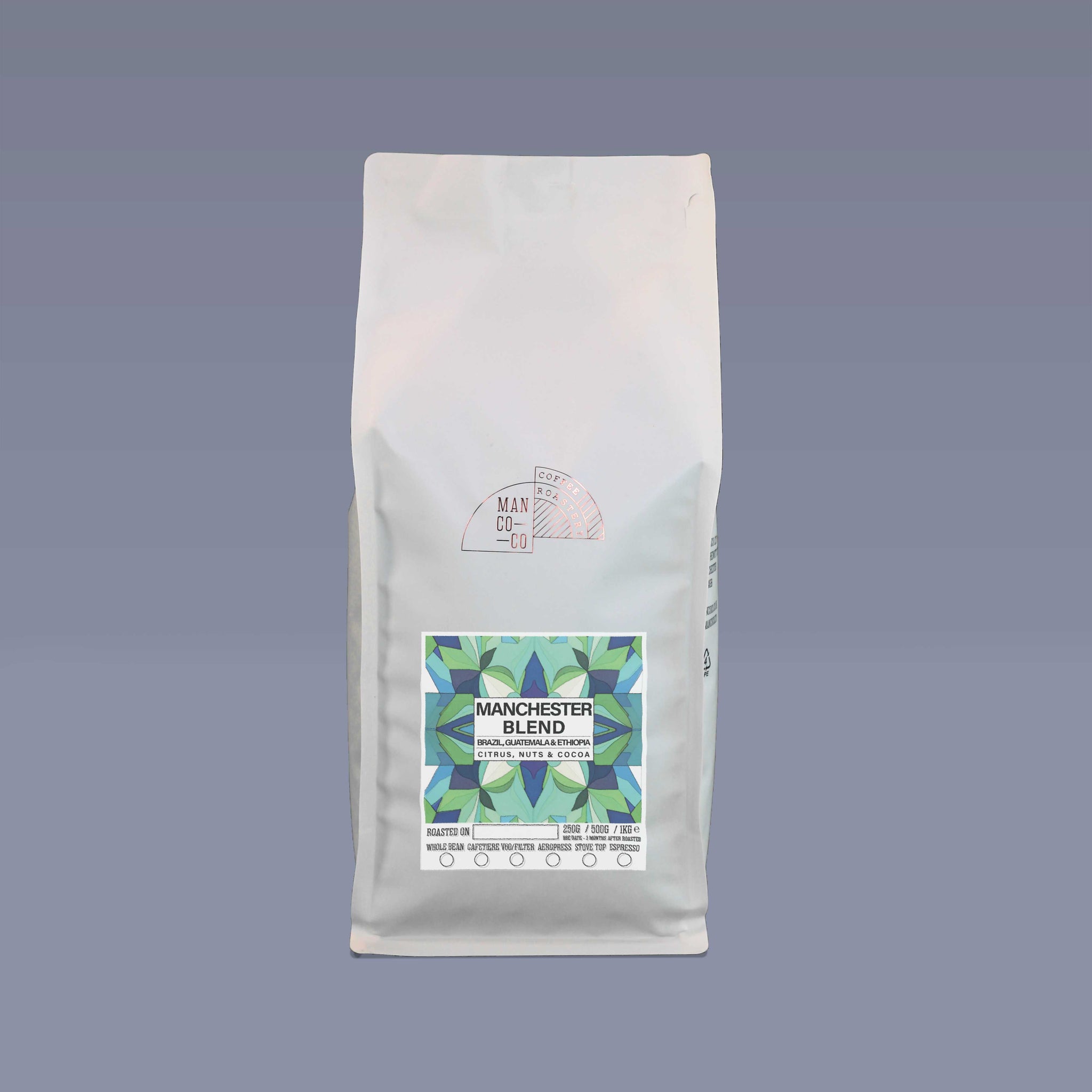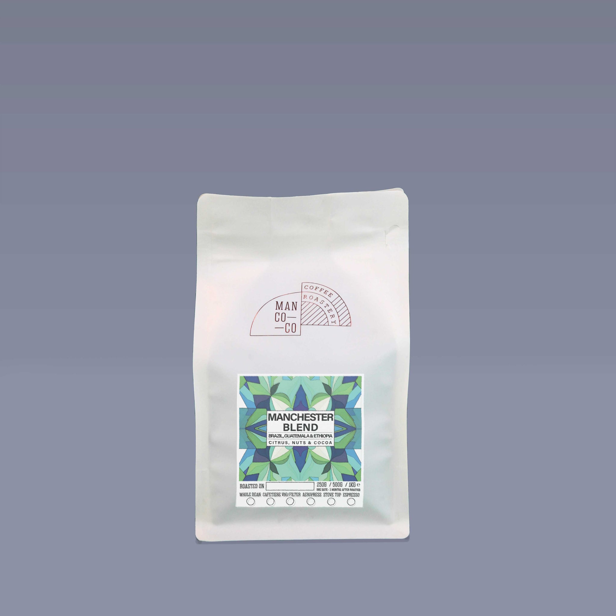 Our Manchester Blend is crafted with three 100% single origin Arabica Coffees from Brazil, Ethiopia and Guatemala - all medium roasted in the heart of Manchester in our Artisan Coffee Roastery. This signature blend has notes of cocoa and a hint of citrus and nuttiness, ideal for filter or cafetière. Our exclusive ManCoCo blends are crafted by our team, we’re dedicated to creating high quality artisan coffees for you to enjoy.